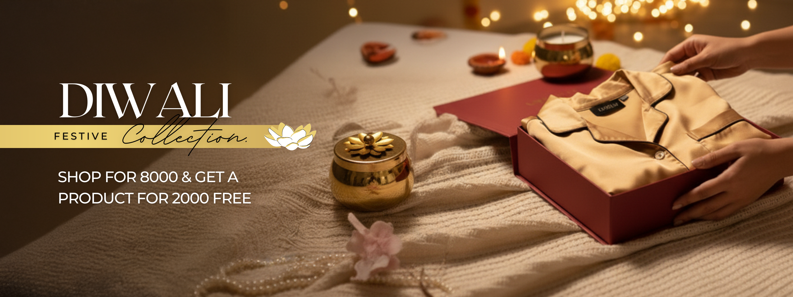 Diwali Gift Box for Women | Premium Satin Loungewear & Candle Set